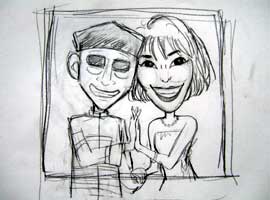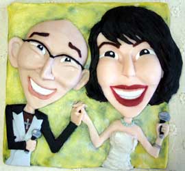 それから衣装の部分だけ、ざっくり剥ぎ取って、まさおさんにスーツを着せました。サングラスの代わりにメガネをかけました。HIROKOさんに髪の毛をつけました。やれやれ、完成!