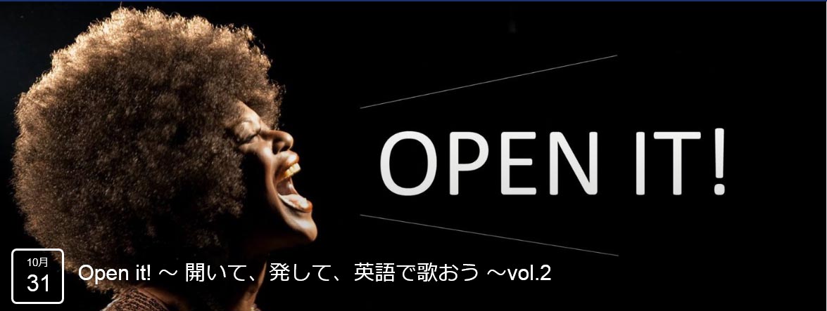 「Open it!」口を大きく開いたり、シャイなあなたが少し心をスカッと開けられたり参加者の皆様と私たちと共々にそれぞれの「it」がたくさん拓ける時間となりますよう、