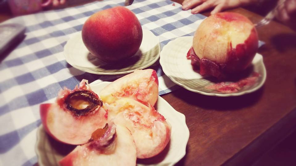 くーちゃんのブログ記事にあった桃の剥き方を試してみました。(手前の)。