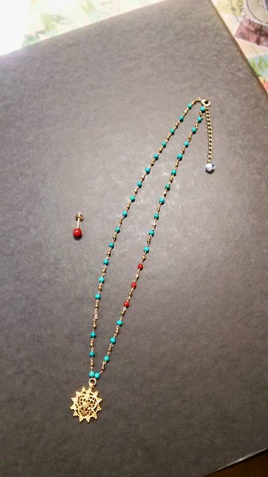 そして先日から気になっていた、ターコイズに珊瑚、トルコの太陽モチーフの付いたネックレス。