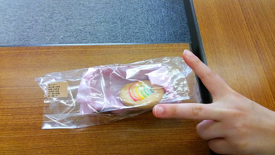 AlphaBetCity!のテーマカラーは虹色なので、練習の時に食べてもらおうと思って虹色のクッキーを買いました。