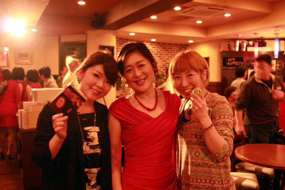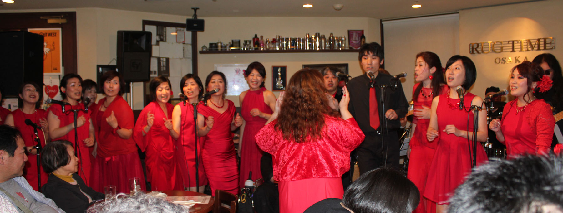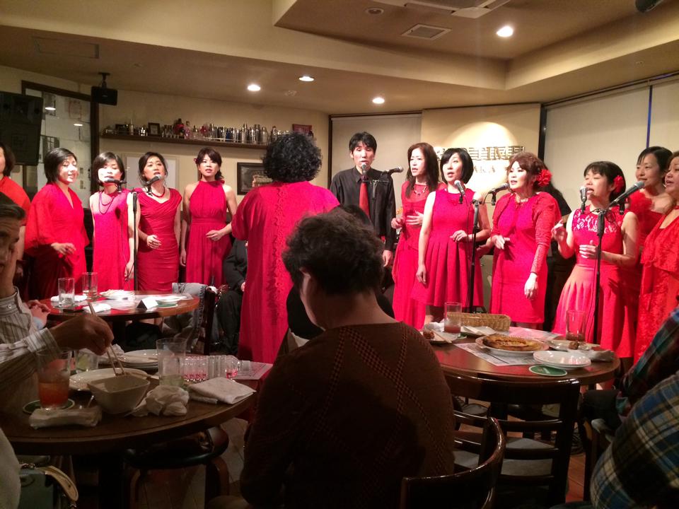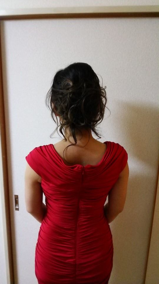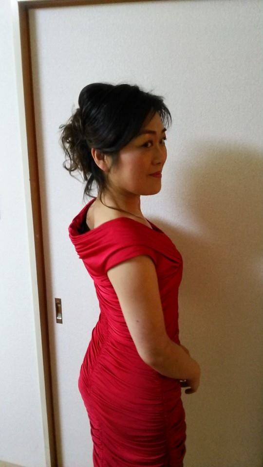 コトコトさんでゲットした赤いドレスと靴を身に着けて歌う、