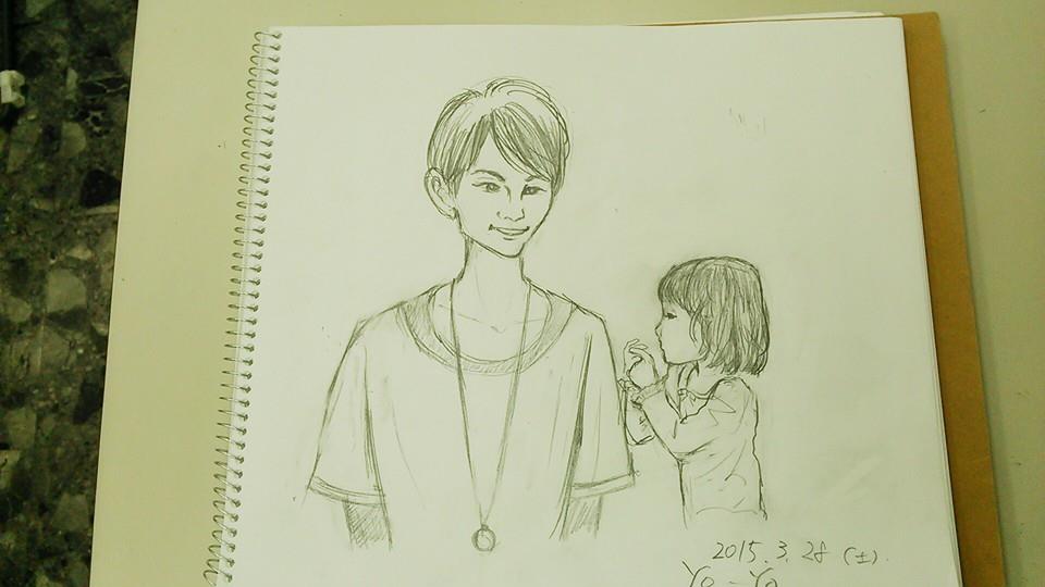 久々に来阪した恭さんとお嬢ちゃんをみんなで描きましょう、というもの。