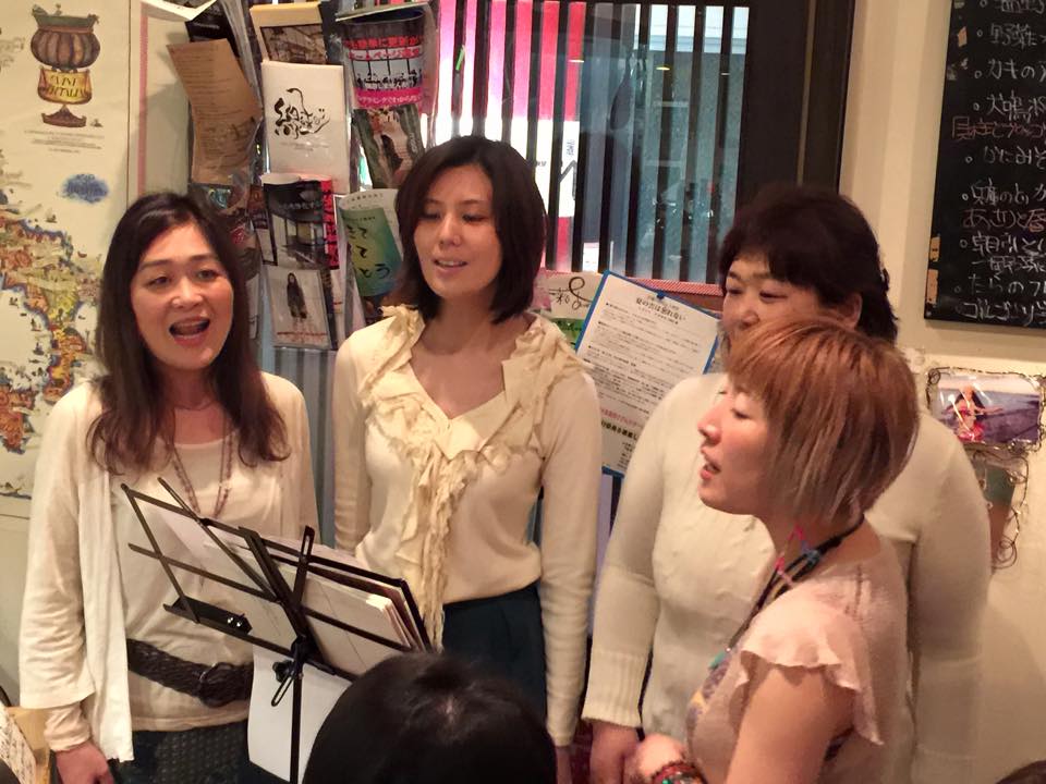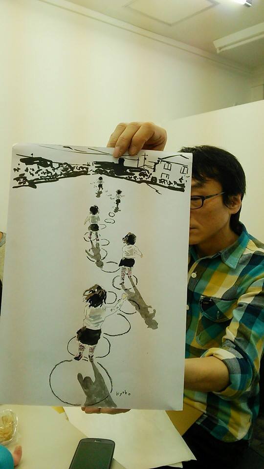 Kyoko, who used to live in Ibaraki city and was the member of it visited Osaka, and Sada san gathered us and we drew her picture.