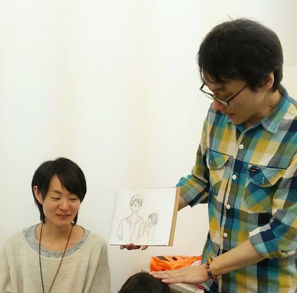 その昔、茨木市にあったクラフトカフェ「イーハ」にて開催していた、タナカサダユキさんの似顔絵教室。