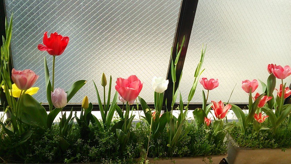 うちのベランダのチューリップが咲き、麦も咲き♪