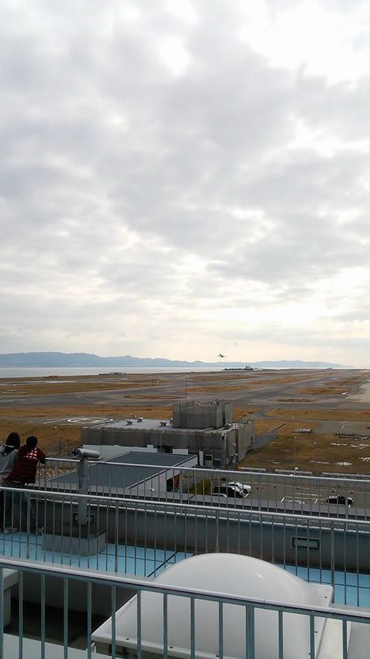 屋上の展望台からは離陸するのが間近に見られます。今日はあったかかったし、空と海の広がる中飛び立って行く飛行機は、なんだかワクワクします。
