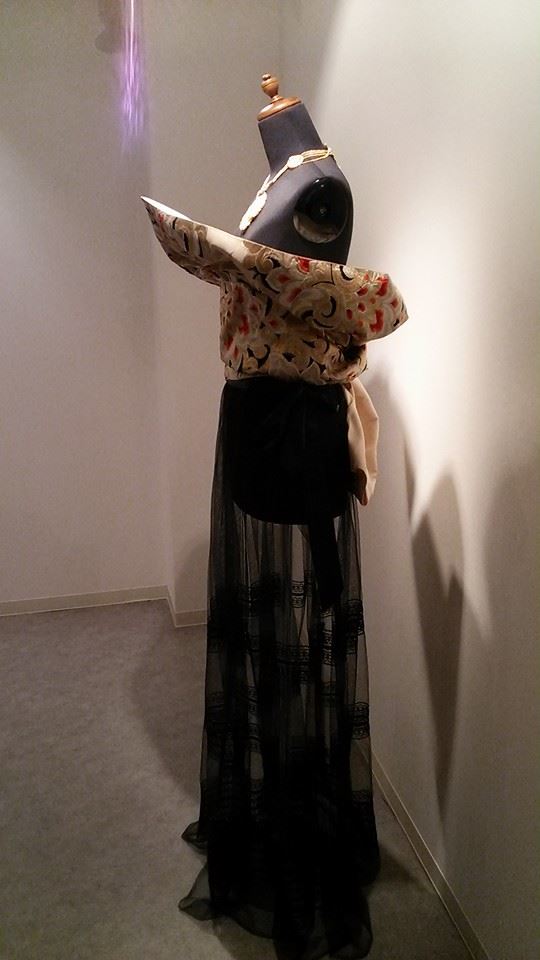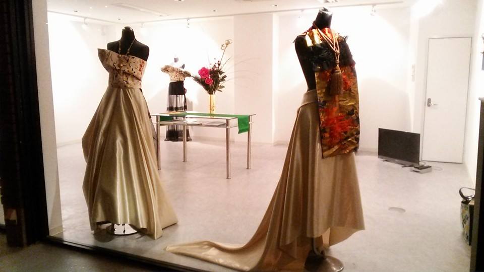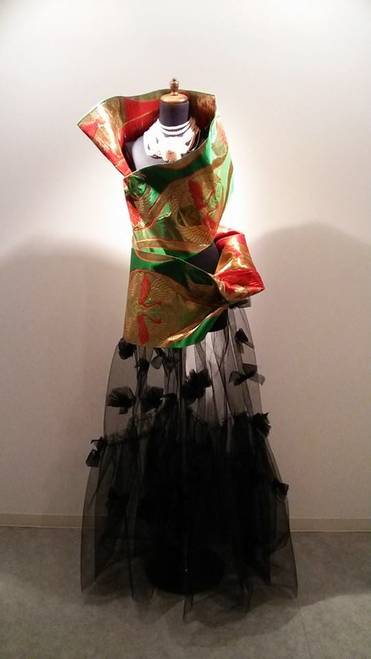 西陣織を使ったインスタレーション的ドレスの数々。