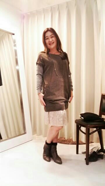 スカートでもパンツでも合わせやすい、少し裾にゆとりのある、ちょっと長めのニット♪