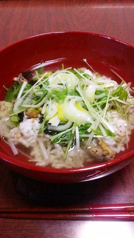 お昼は焼きふくの残りと水菜とネギでお茶漬け~(*^▽^*)