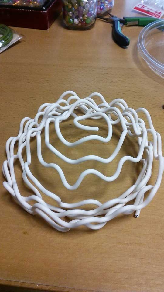 頑固自在「乳白」径3.2mmをうねうねにして、円錐状に作ってます。(中心は別のワイヤー)