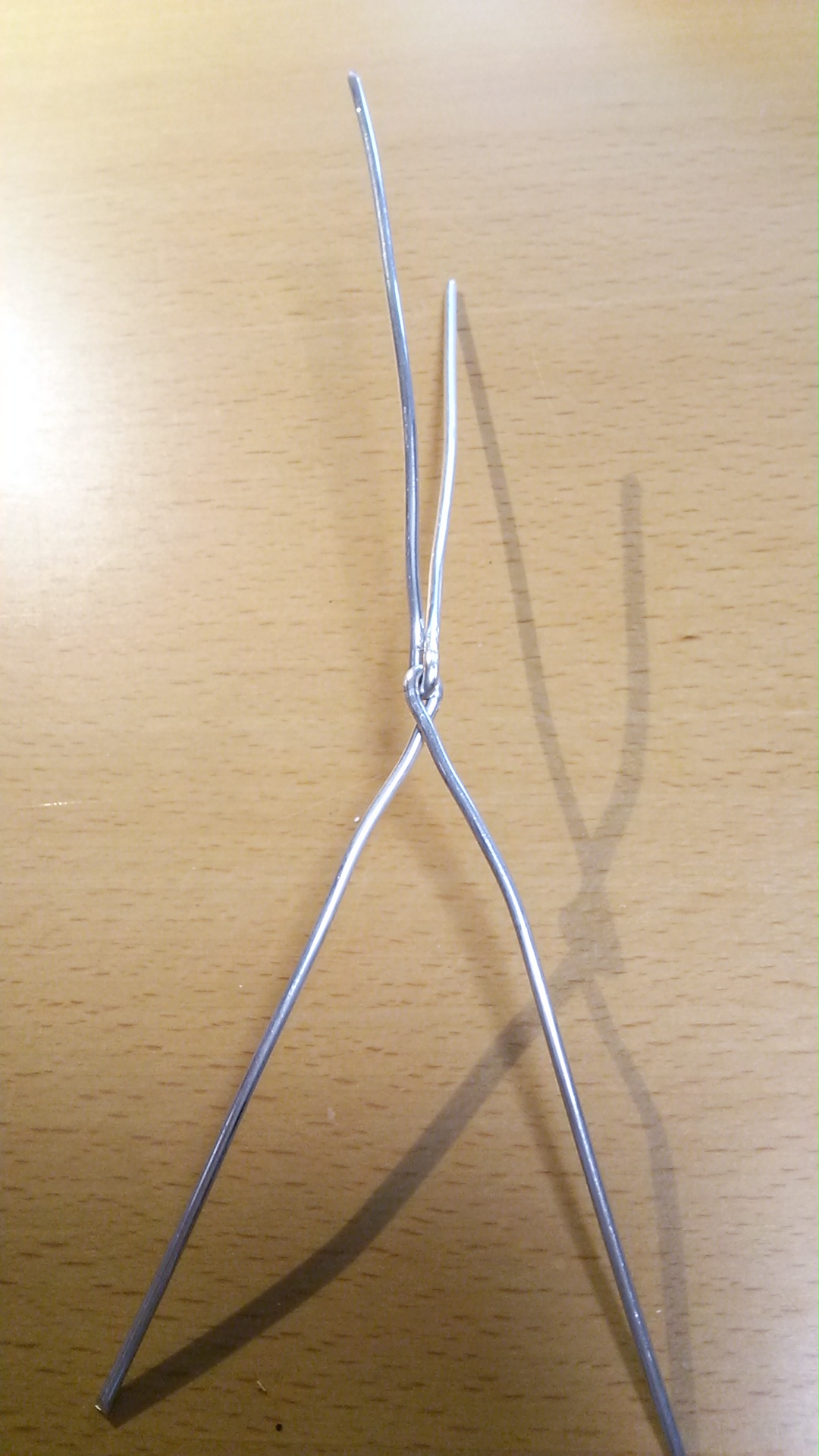 太さ2.6ミリの針金で基本の形ができたら、幹の部分と針金の交差するところを1ミリの針金でしばっていきます。