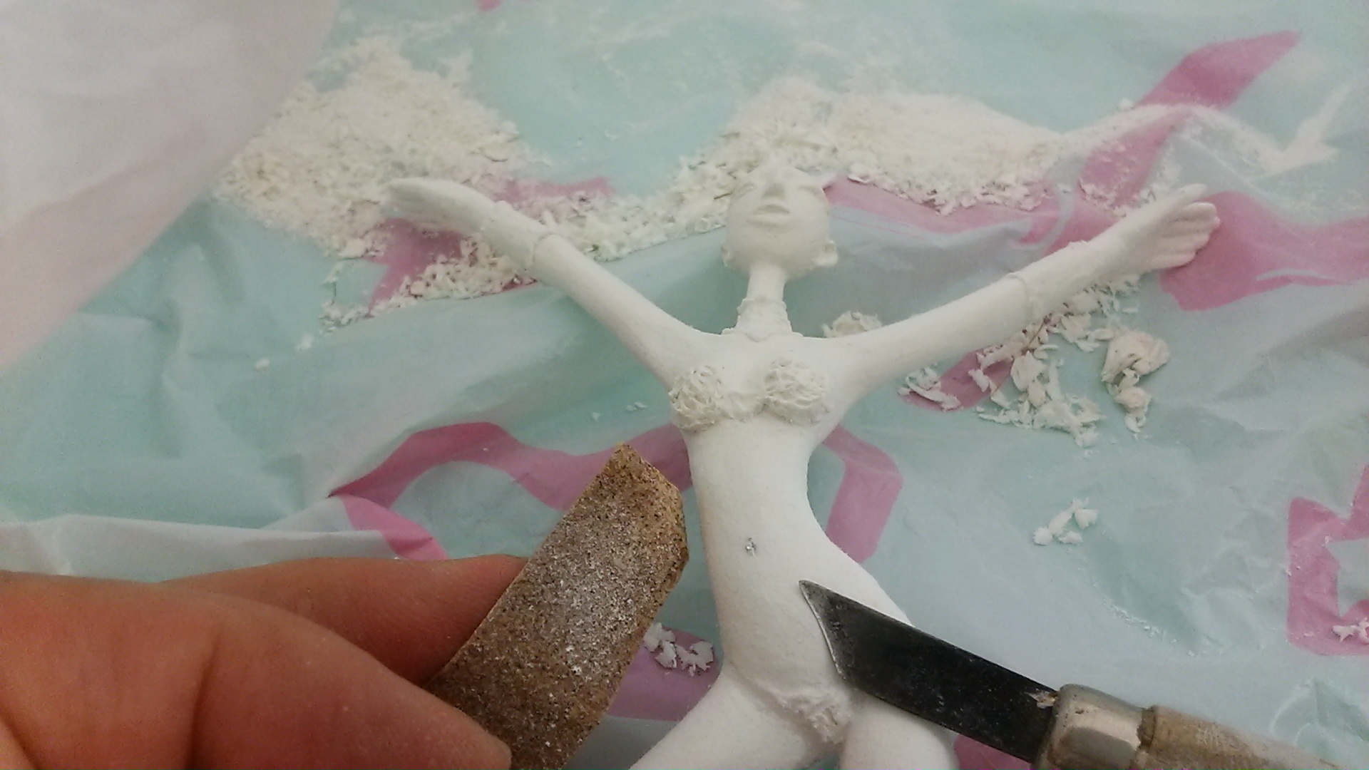 粘土を付けて、また削ったりやすりかけたりすることなど説明し、