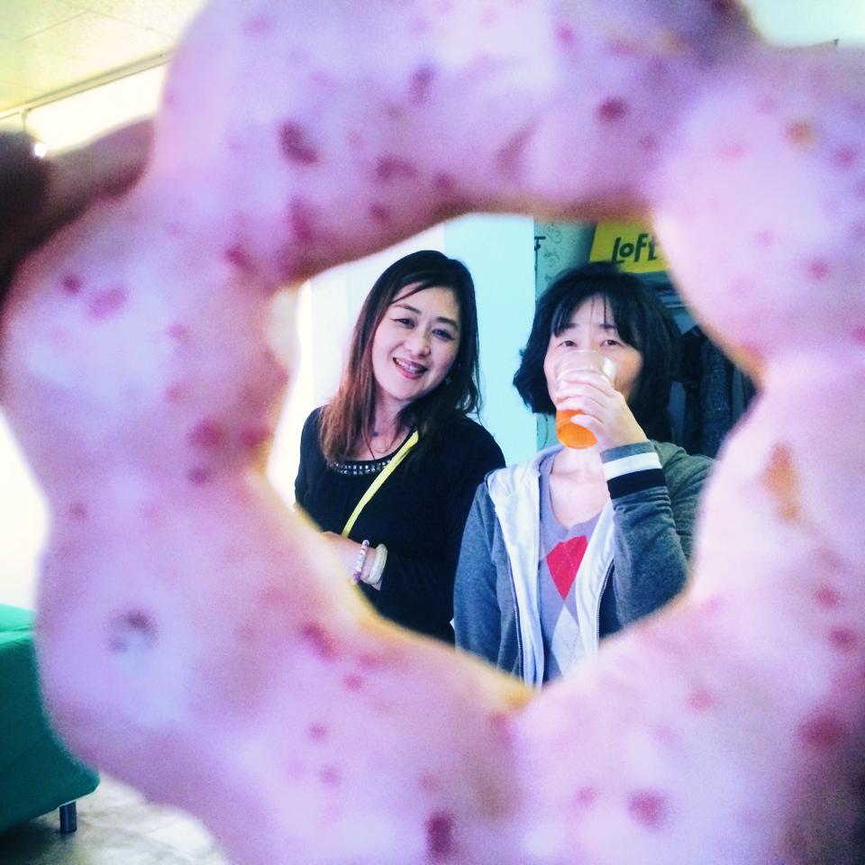 米谷さんのお母さんからの差し入れドーナツで、小川葉津季ちゃんとコラボw。