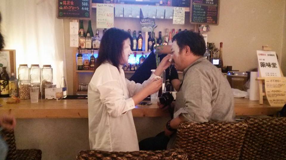 イラストレーターのchiyさんが、ゾンビメイクをしてくれます。他にもお土産ケーキを焼いたりしていろいろ活躍されてます。すごい♪