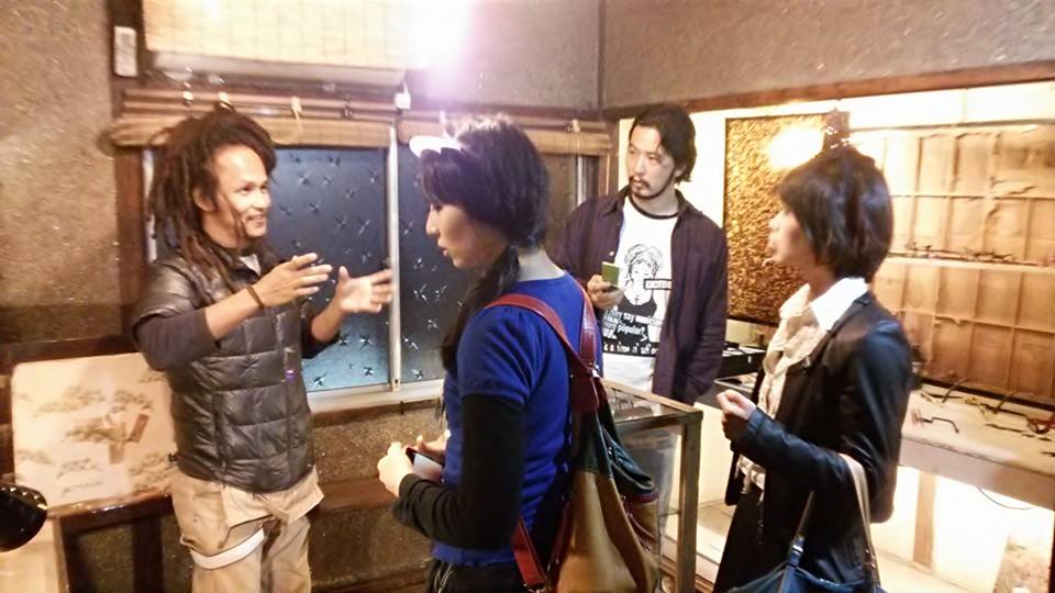 夜も更けて来た頃、「騒ギ」ご近所の「隠れ屋1632」というアートなメガネ屋さんがご来場。みんなでお店に遊びに行くことに。