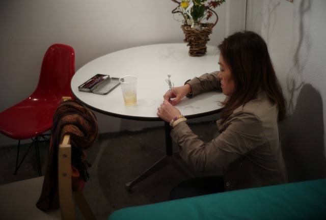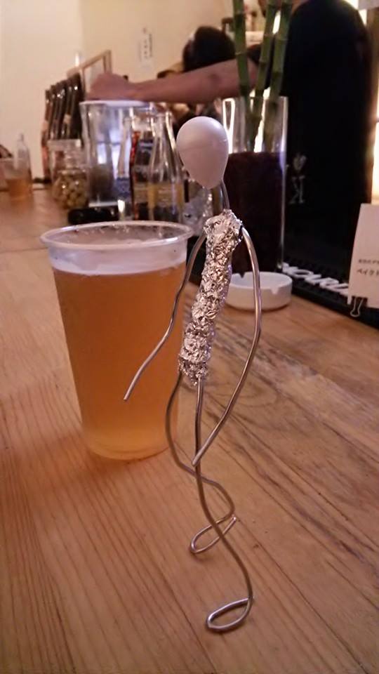 ノーボーダーなのでいろんな人が参加してますが、その中の一人、バーカウンターで飲み物など作ってくれるたかこさんは、初挑戦で粘土の作品を作ったそうです。