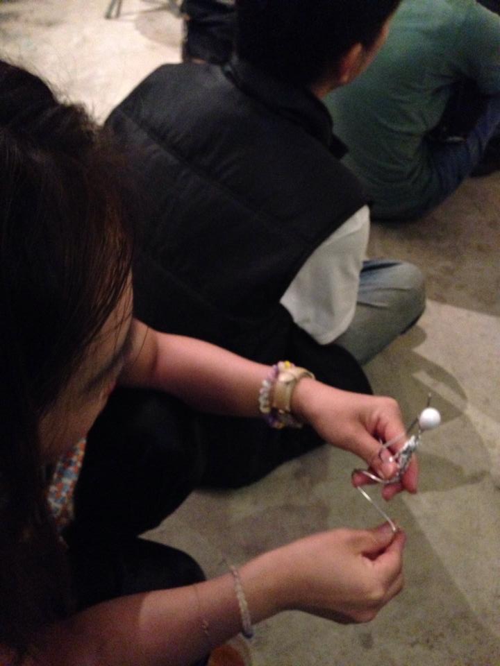 手足・頭の針金の下準備をし、アルミホイルと細い針金を持参してその場で組み立てました。