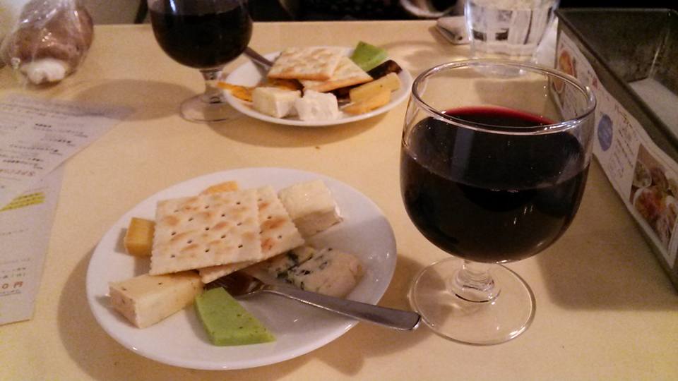 チーズ魂のチーズ盛りプレート、ミリバールマルシェ特製ランチにワインいただいて、昼間からいい気分(*^▽^*)