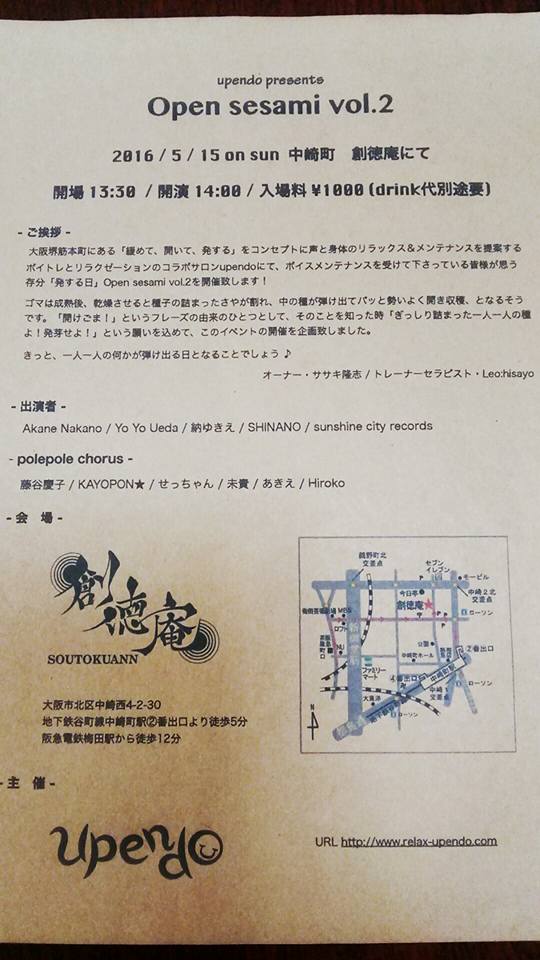 5/15(日)のウペンドの発表会「Open sesame vol. 2」の最終リハでした♪