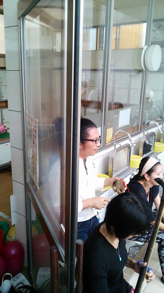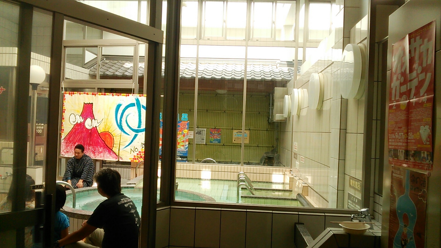 この頃には営業開始したので、お風呂に入りに来るお客さんが時折横を通って行きます。