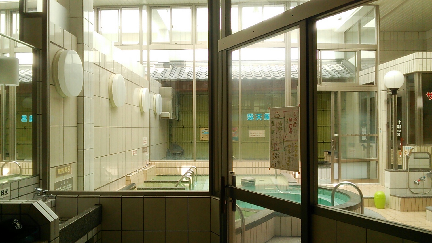 左が女湯、右が男湯です。わー左右対称。こんな景色はふつう見られないのでなんだかワクワクしました。