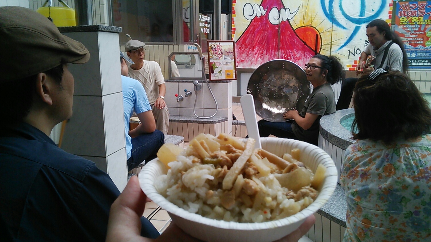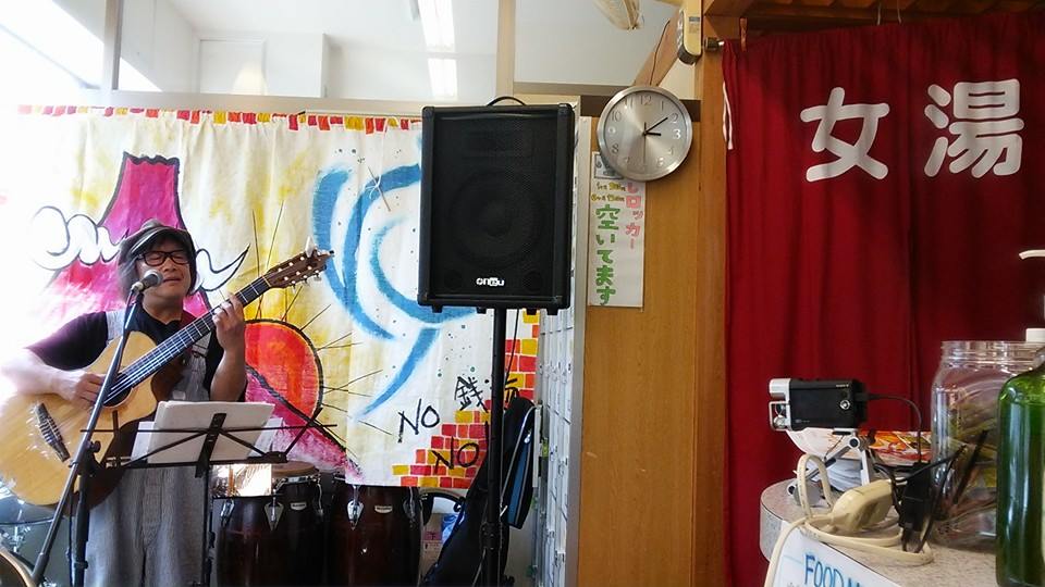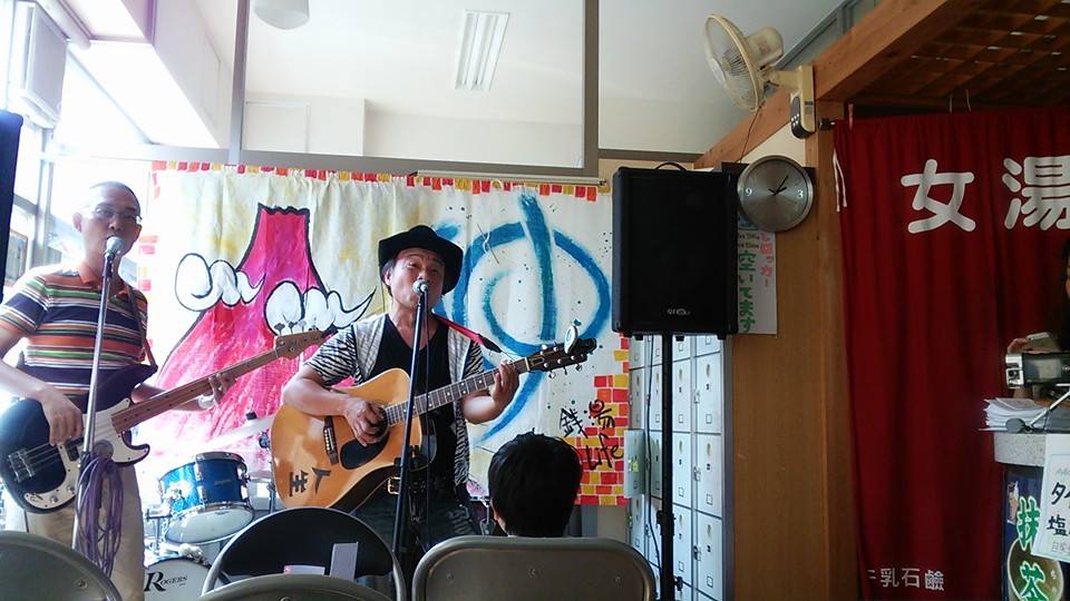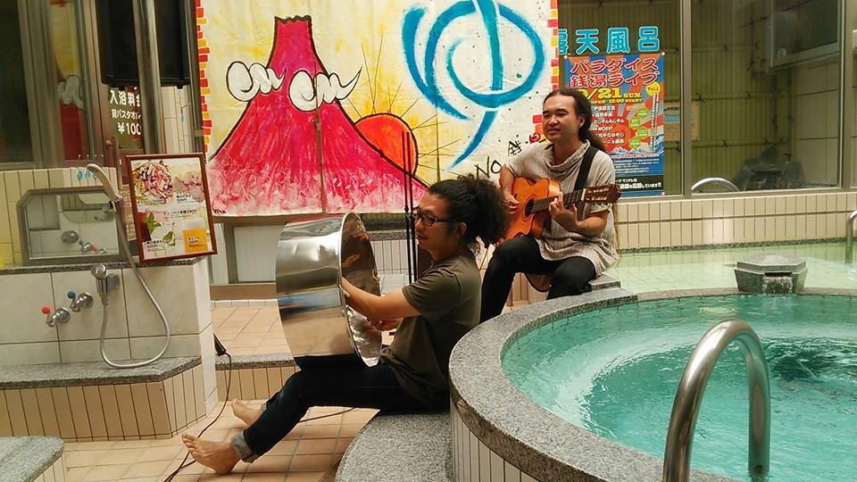 ライブは女湯で。しかも、2ステージ終えたら通常営業が始まるので、しっかりお湯が張ってある。