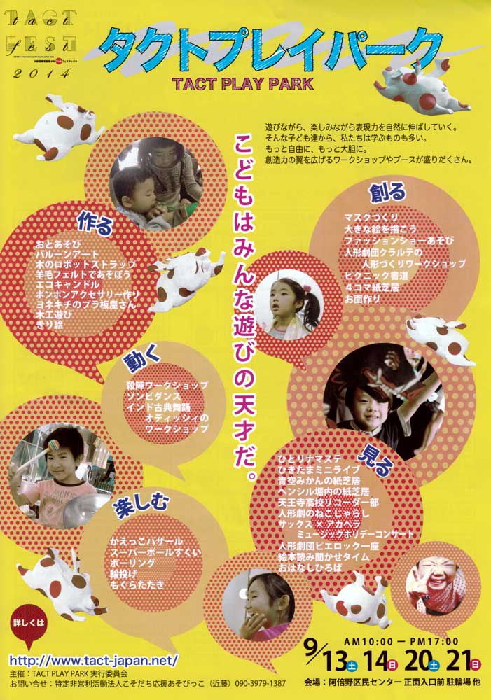 そして、阿倍野区民センター前の駐輪場内では9/13(土)14(日)、20(土)、21(日)「タクトプレイパーク」が開催。