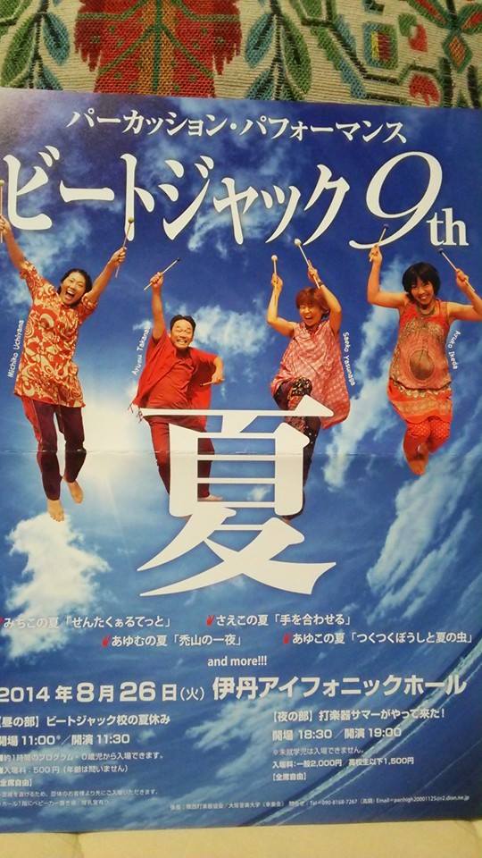 そんな安友子さんの所属するパーカッショングループ「ビートジャック」が8/26(火)にありますよ♪