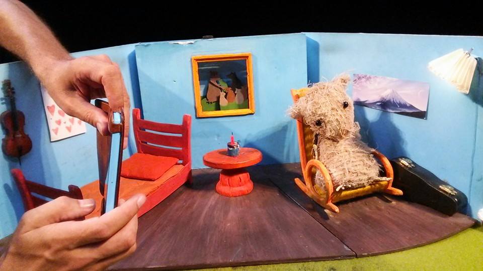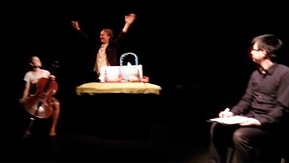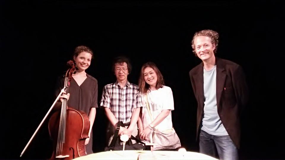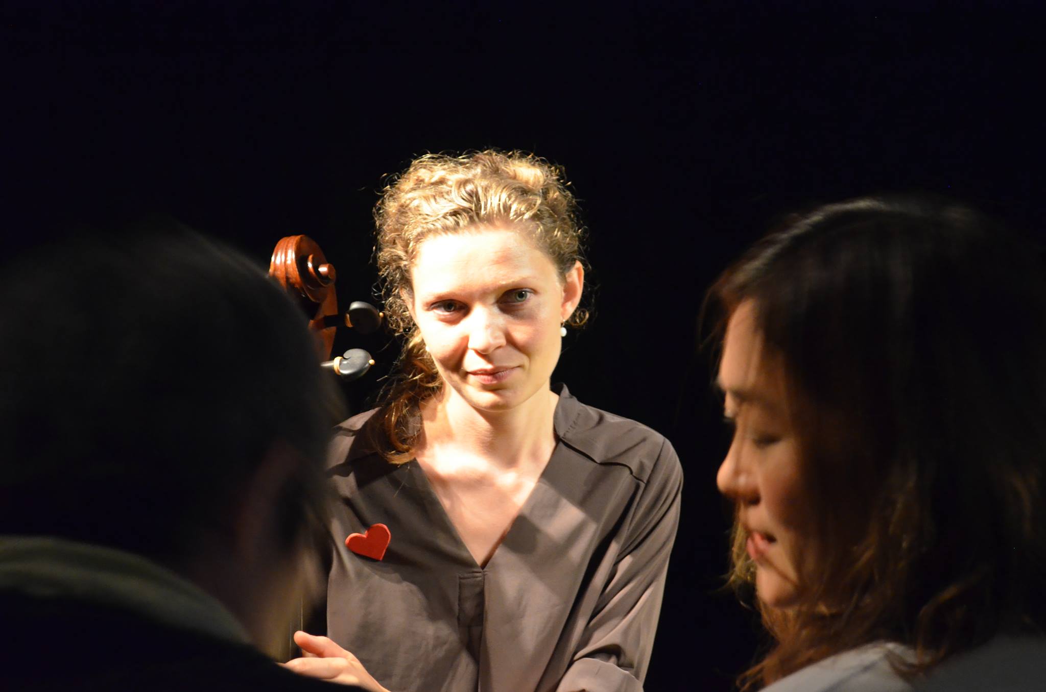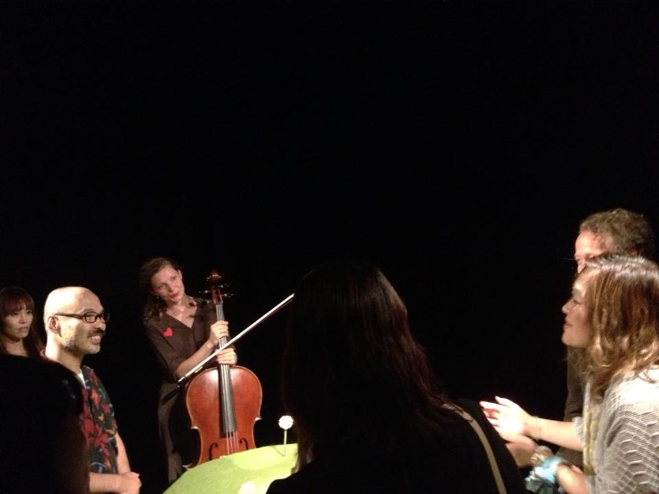 チェロ奏者のソフィアさん。お芝居に合わせて即興的に演奏しますが、一部、有名なチェロの曲なども弾いているそうです。と、観客の方が言ってました。