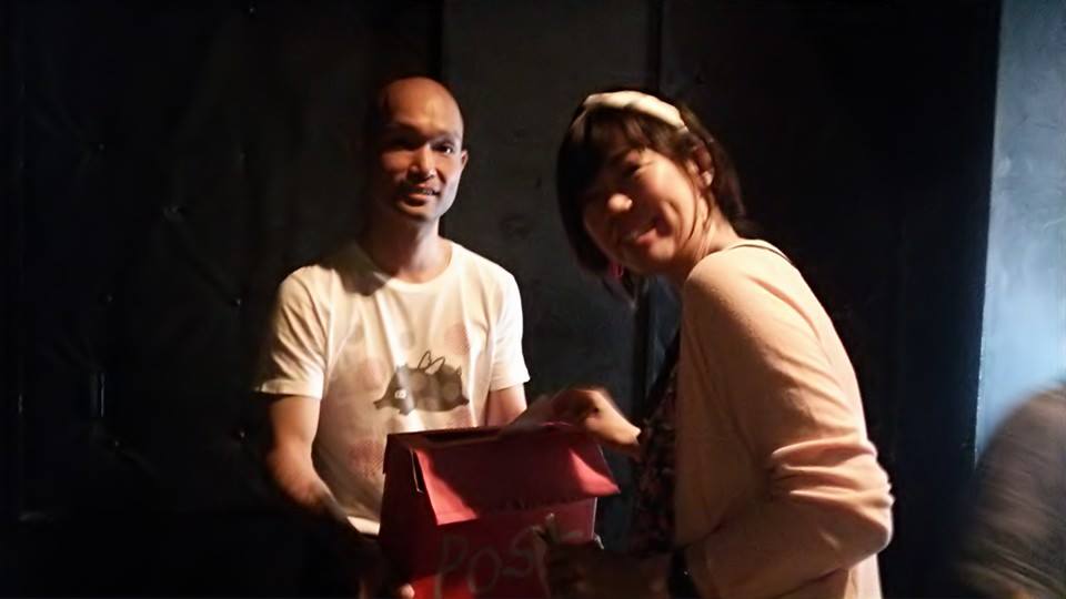 ヨーコさんご夫妻、お越しありがとうございました。KIOスタッフの持つポストに「お手紙」を入れるヨーコさん。
