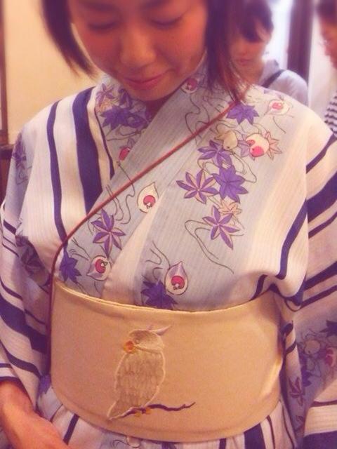 七夕なので浴衣、しのぶさんに着付けてもらいました~(*^▽^*)。