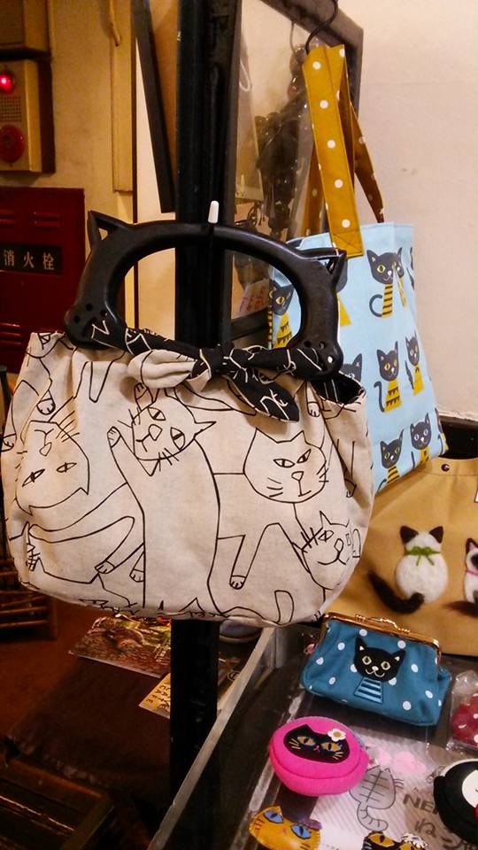 猫プリントのバッグは、持ち手も猫の形になってます。