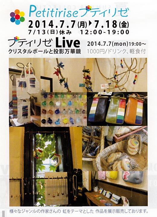 「petit 小さな」「iriserイリゼ(動詞)虹色に染める等の意味」で、虹をテーマにした作品展です。
