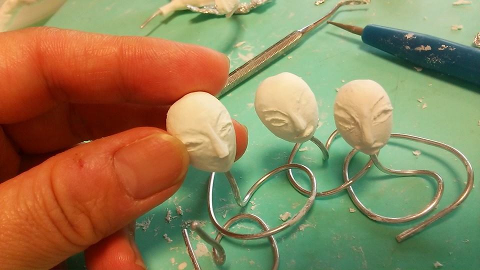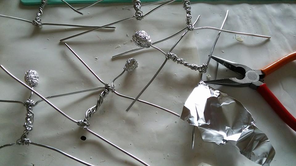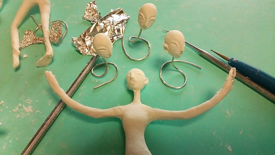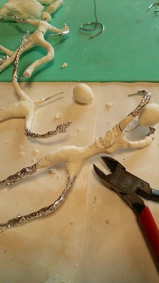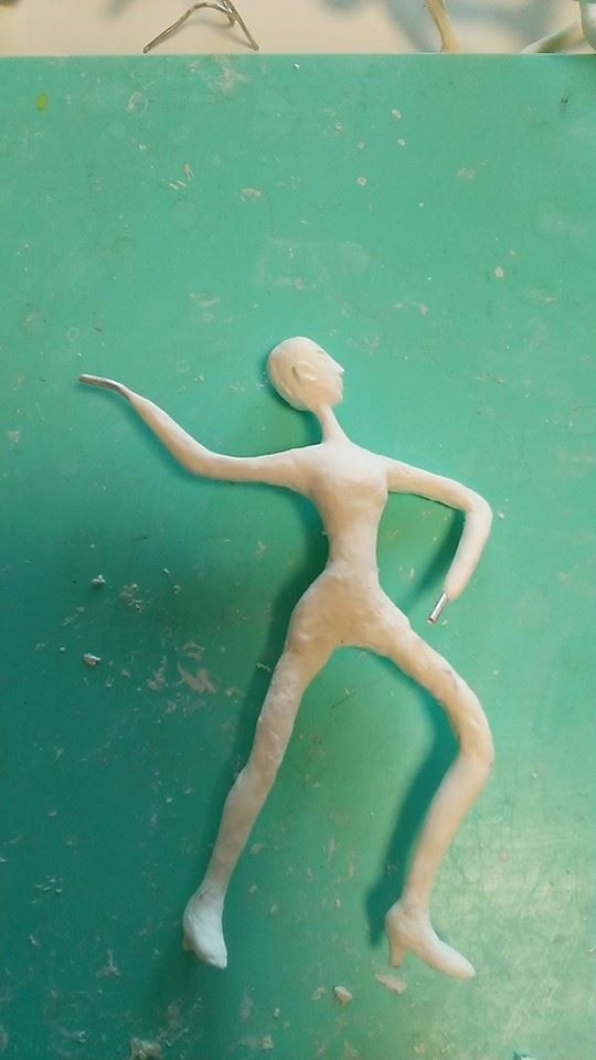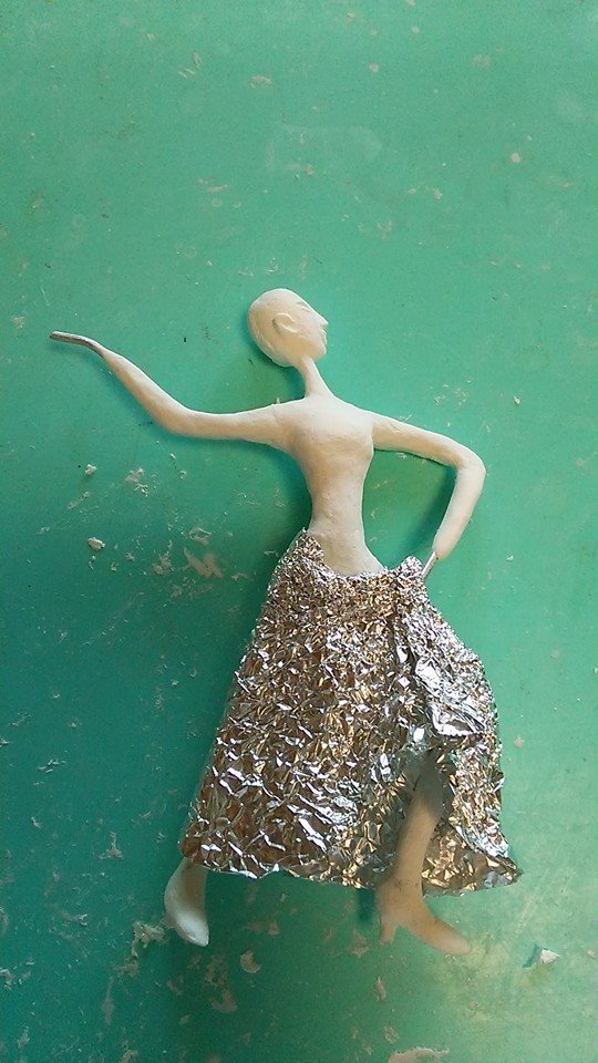 スカートを履かせるために、アルミホイルで粘土の土台作り。