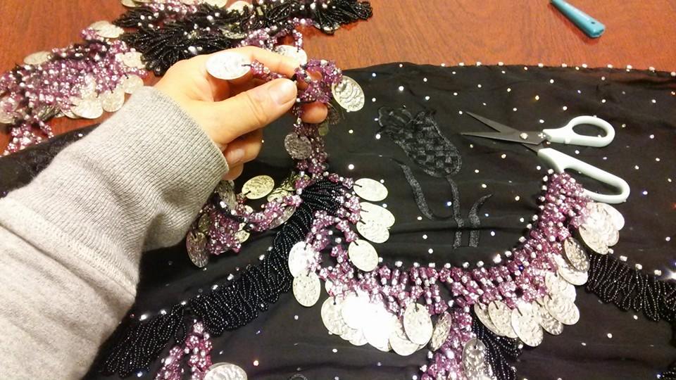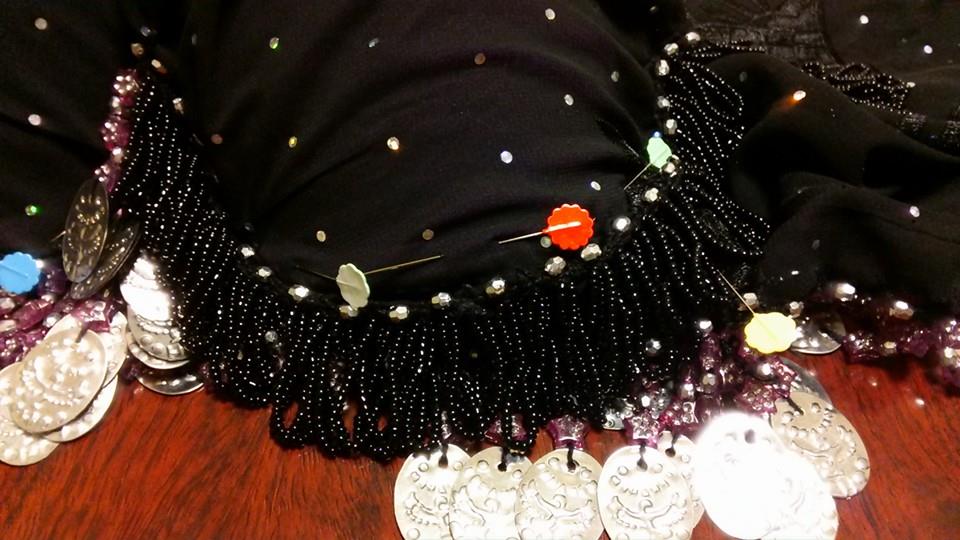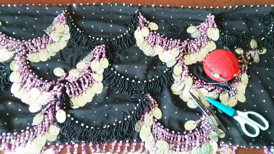 たとえば、コインやビーズがびっしりついて、あまりの重さに一度も使ったことのないヒップスカーフを衣装にリメイク。