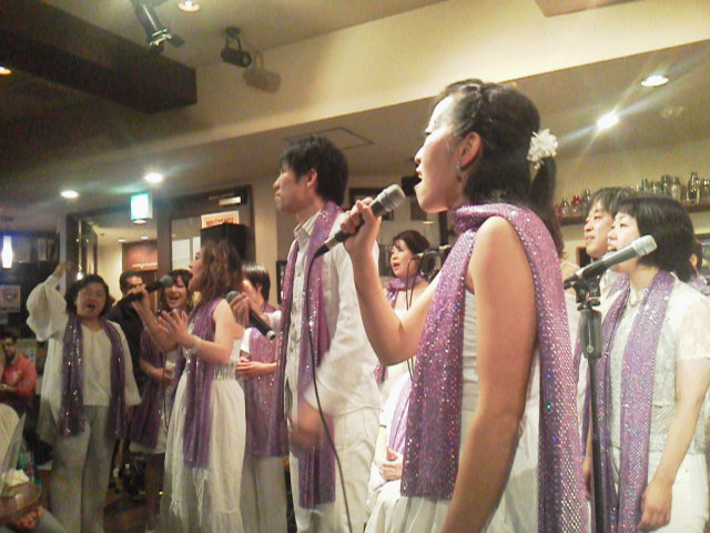 部分的にソロ(ソプラノ、テナー、アルトで合唱)の曲がありました。今回はマイク手持ち。