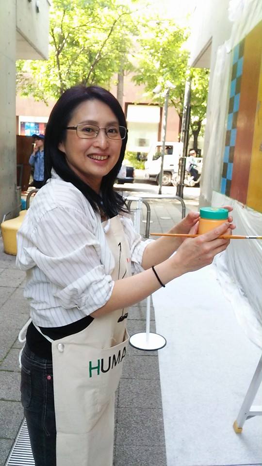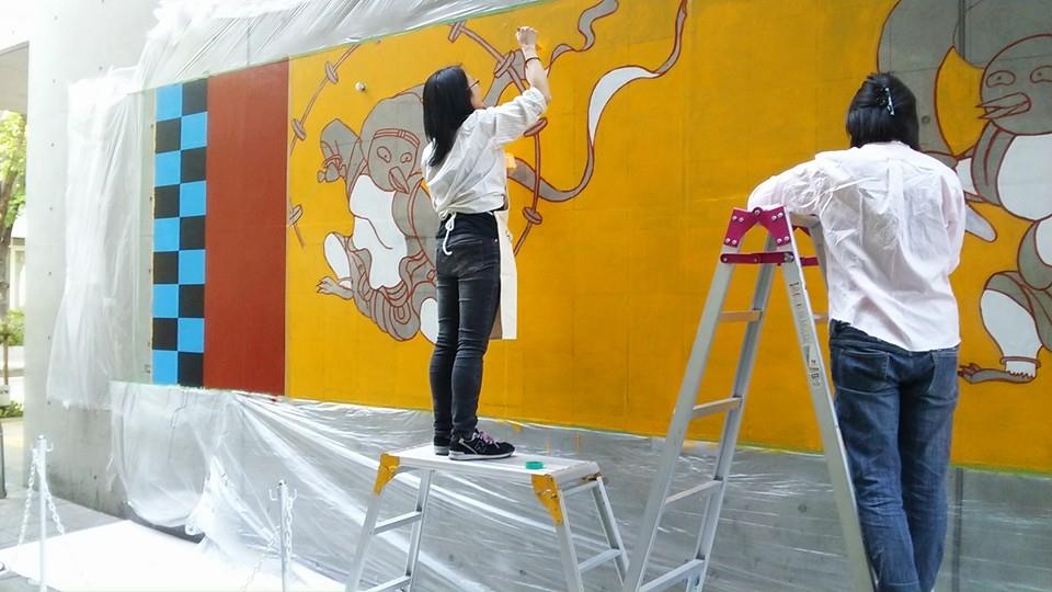こちらは松島佳世さん。7×2メートルのペンギン風神雷神制作中。