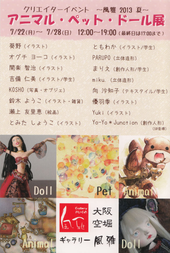 クリエイターイベント ~風雅 2013 夏~「アニマル・ペット・ドール展」