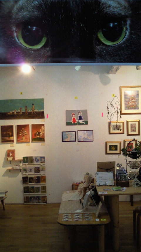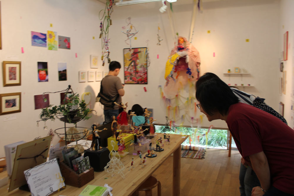 ドアを開けると大きなお目目がお出迎え。総勢18名の作家によるバラエティな作品がたくさん。