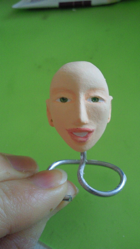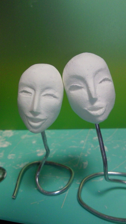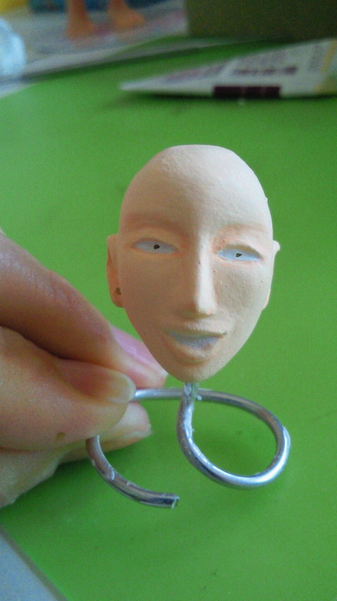 やっと色塗りに入っても、筆の跡がつかないように、美しく美しく、と思うあまりにすご~く薄い色にしか塗れなかったりして。右の作りかけの粘土の白とあまり変わらない。慎重というより臆病になってる自分にちょっと嫌気もして、もう少し健康的な色に全部塗り直しました。