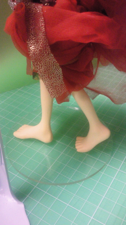 足を透明アクリル盤に接着。最後にネックレスを着けて完成しました。