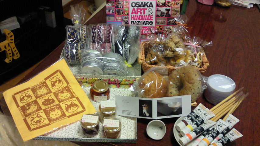 ジャムやらベーグルやらも買い込み。小瓶は後でビーズ容れにするつもり♪猫グッズも抜かりなくw