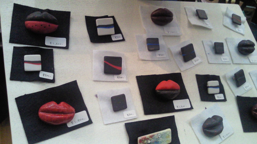 陶器の唇ブローチは、先日ゆみ先生の日記で見かけたアトリエyajiさんのもの。