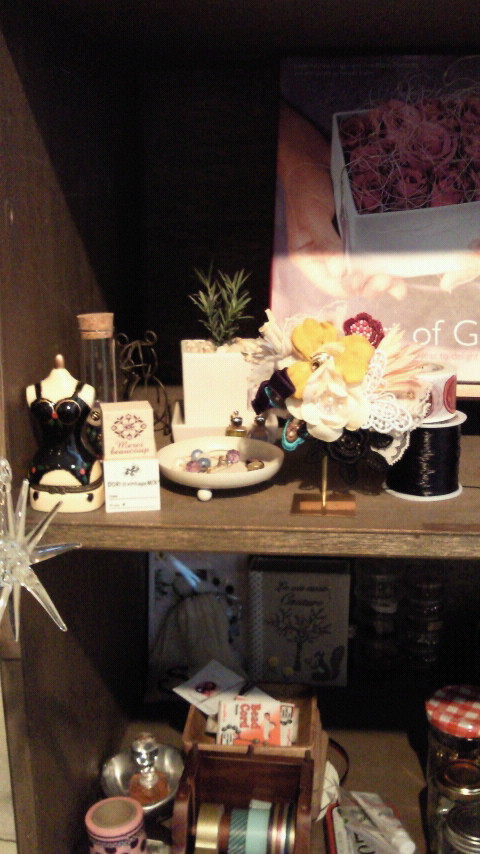 京阪神のいろんな手作り作家さんや雑貨店などが一堂に会したもので、コサージュ作家のマーノさんが出店してました。