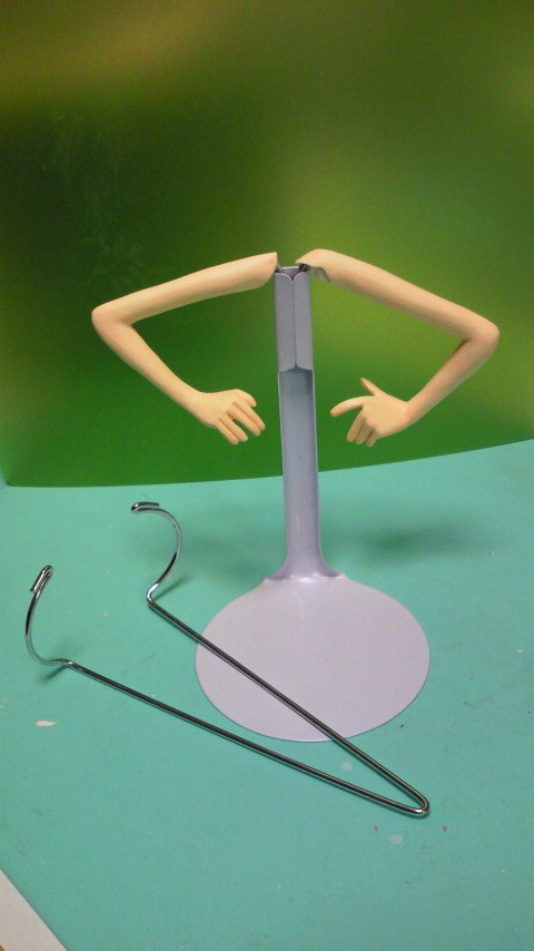 腕の方は、前の日記では青いスタイロフォームに刺してますが、