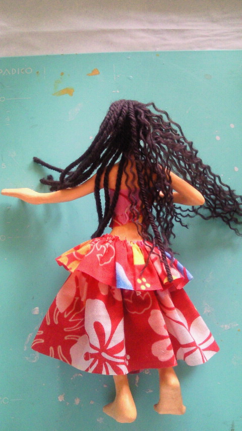まあこのままでも良かったんだけど、ねじった太い束はなんとなくドレッドな感じだし、フラガールの長い髪は柔らかなウェーブの方が似合うかな、と。