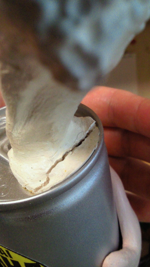 3番目の写真の白い削りかすは、盛った粘土から指を削りだしたものです。