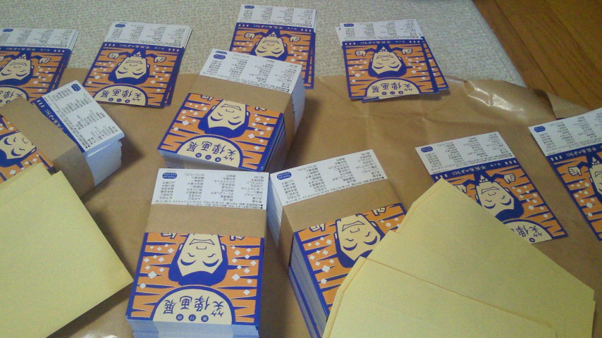 夫と手分けして参加者に発送作業。日曜でも開いてる郵便局へゴー!