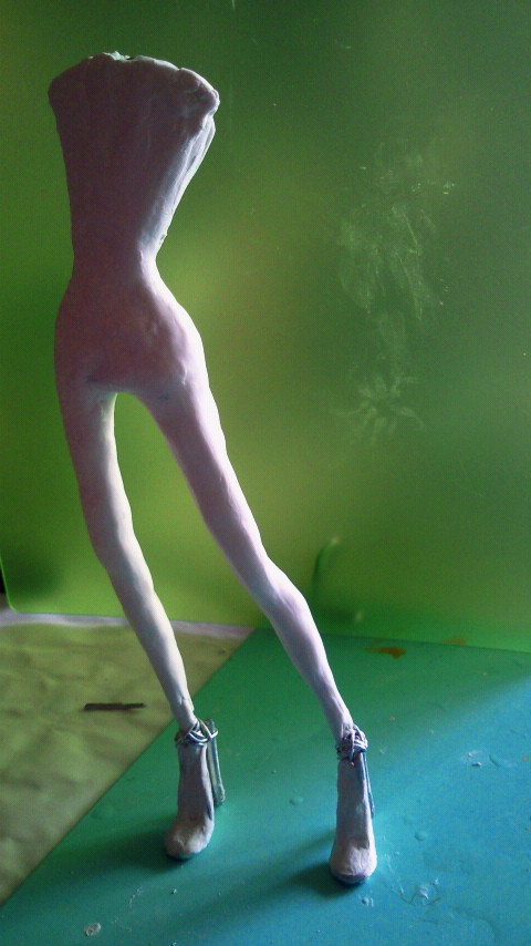 足のバランスが気に入らなかったのでやり直し。ハイヒールを思いっきりハイヒールにしました。でも最近、ホントにこれくらいの履いてますよねー。